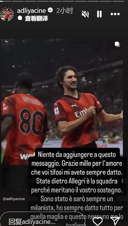 直播吧9月11日讯 在正式转会利雅得青年人后,阿德利通过社交媒体告别了AC米兰。