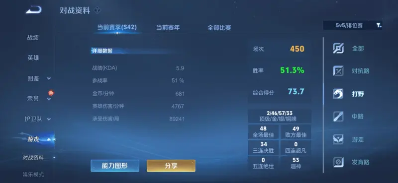说明:以同一玩家,本赛季排位和巅峰赛数据,套入真实实力公式对比!为了防止公式作弊,